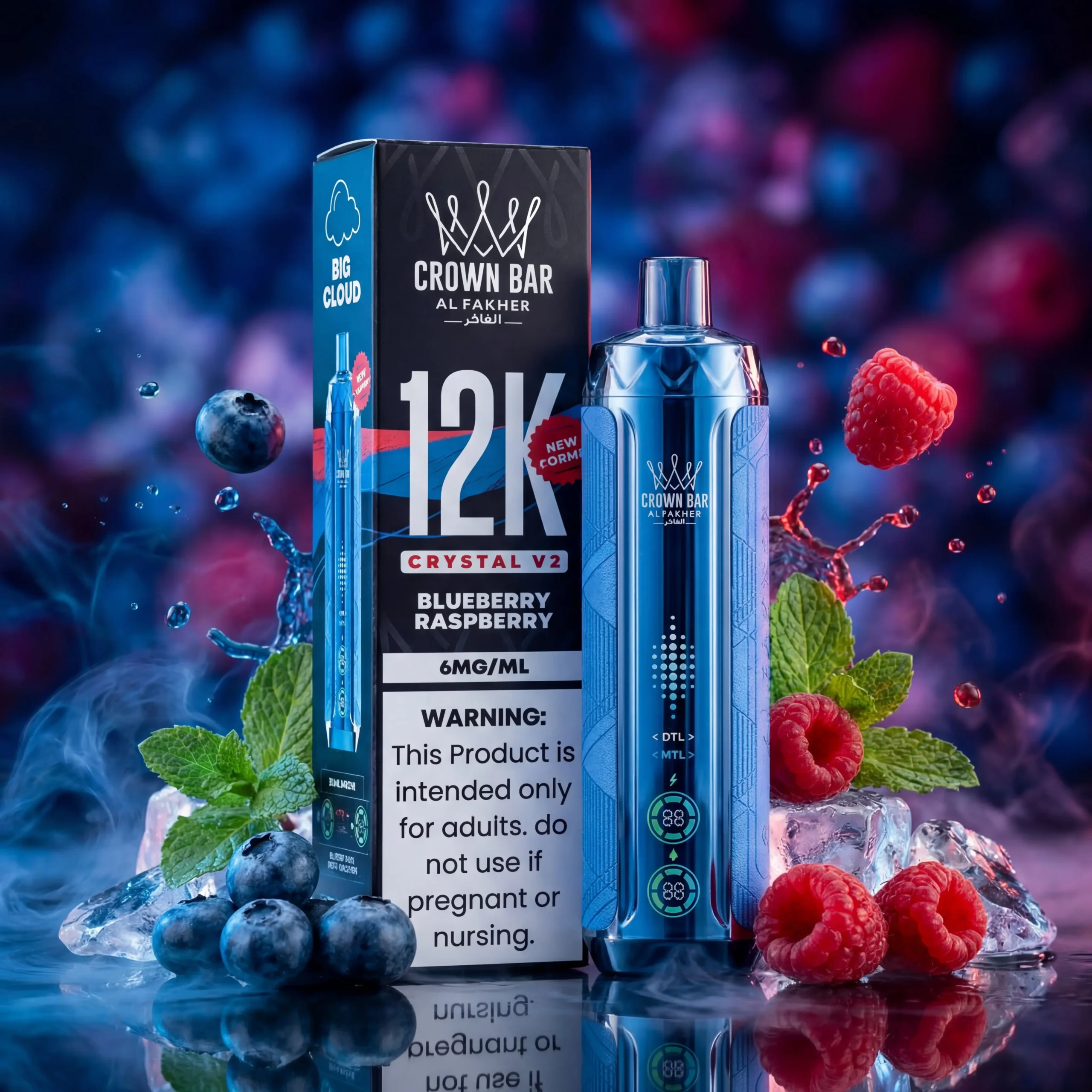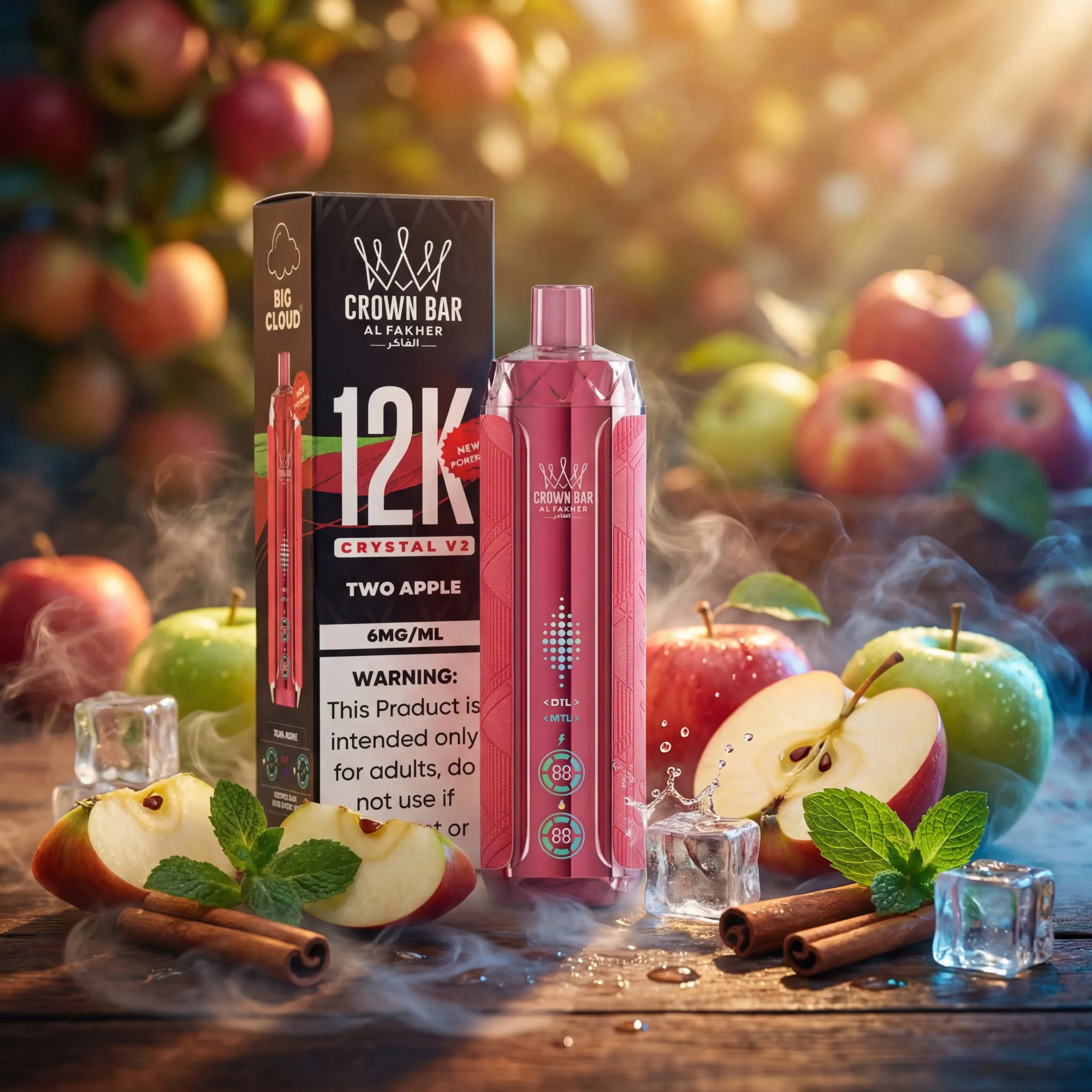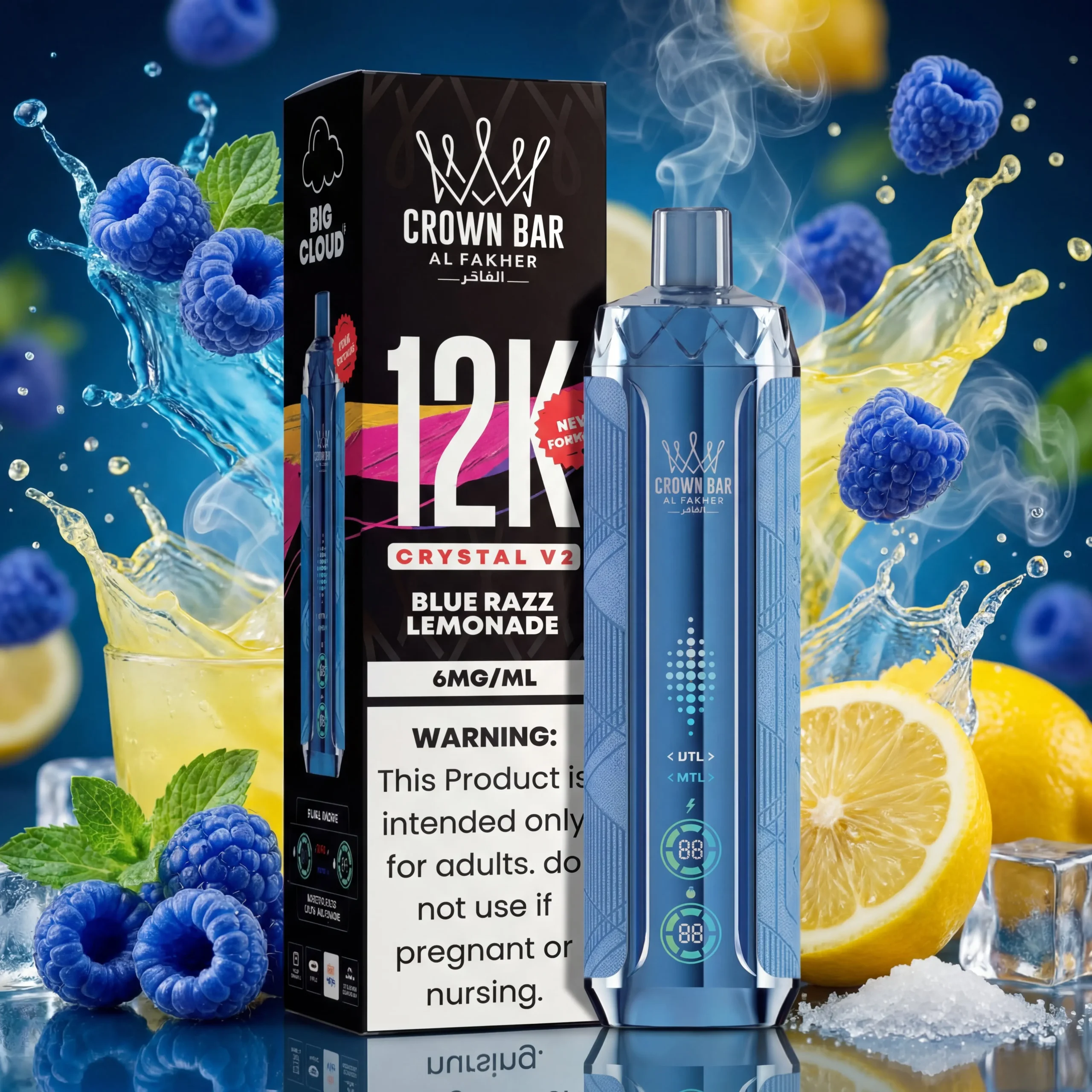 The Al Fakher Crown Bar Crystal 12K gives you the experience of the Hookah bar at home. With its innovative 6mg Metatine formula, you get to experience a truly distinct sensation compared to traditional nicotine. Every pull will be incredibly smooth and satisfying without the harshness some associate with higher nicotine concentrations. This blend is perfect for those who enjoy a moderate hit that’s both effective and remarkably gentle on the throat, making every puff enjoyable and refreshing.