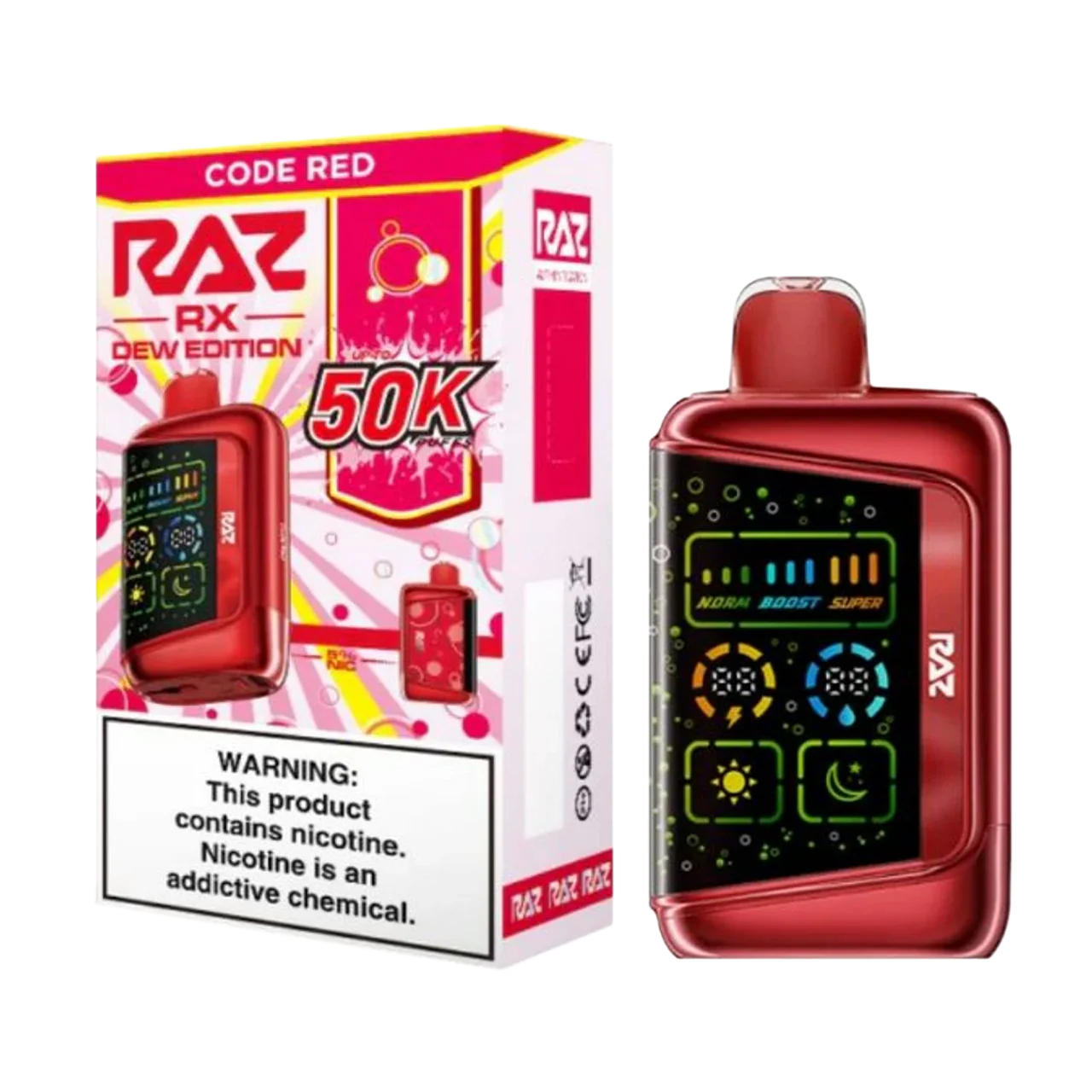 Inspired by iconic soda flavors, the new RAZ RX 50k features three vaping modes — Normal, Boost, and Super Boost. The new and improved LED display screen allows you to see real-time data and over nine adjustable airflow/wattage levels lets you customize every vape pull. Unlike standard disposables, this model offers full user control including being able to toggle between Light or Dark mode to monitor your stats without overly draining your battery life.