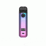 The SMOK NOVO 4 25W Pod Kit, a compact and user-friendly vaping solution. It features a wattage range of 5-25W and an adjustable airflow dial for customizing your vaping experience. The device is crafted from durable zinc-alloy, ensuring both portability and resilience, making it ideal for whatever situation you find yourself in. The NOVO 4 Pod System boasts a 0.49″ OLED Display Screen for easy monitoring of settings and utilizes a single button for wattage adjustment and power control. With a 2mL eJuice or nicotine salt capacity in its magnetic pod, the NOVO 4 uses coils from the SMOK LP1 Coil Series, ensuring a leak-free and satisfying vapor experience.